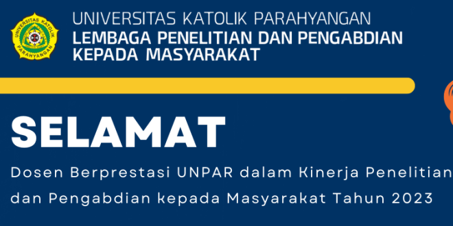 Pada Perayaan Dies Natalis UNPAR ke-69, yang jatuh pada Rabu (17/1/2024), UNPAR memberikan penghargaan bagi para dosen berprestasi berdasarkan kinerja Penelitian dan Pengabdian Tahun 2023. Berikut adalah dosen berprestasi UNPAR yang terpilih sebagai peneliti dan pengabdi terbaik :