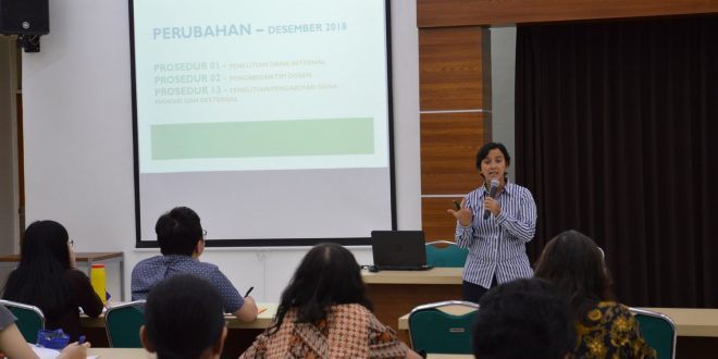Dalam rangka memberikan informasi perbaikan dan perubahan prosedur penelitian, pengabdian, pertemuan ilmiah, dan pengajuan insentif, maka LPPM menyelenggarakan kegiatan sosialisasi prosedur dan SILPPM di Operation Room, Gd. Rektorat Lt. 4 UNPAR. Kegiatan sosialisasi tersebut diselenggarakan pada tanggal 4 dan 6 Desember 2018. Pada tanggal 4 Desember 2018 terdapat 2 sesi yang ditunjukkan kepada dosen-dosen UNPAR, sedangkan tanggal 6 Desember 2018 terdapat 2 sesi yang ditunjukkan khusus kepada para Dekan, Ketua program Studi, Ketua jurusan.
