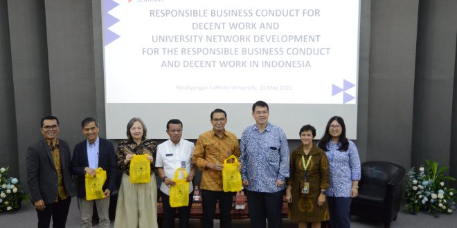 Bandung, 20 Mei 2025 — Universitas Katolik Parahyangan (UNPAR) bekerja sama dengan International Labour Organization (ILO) menyelenggarakan seminar bertajuk “Pekerjaan yang Layak dan Perilaku Bisnis yang Bertanggung Jawab” pada Selasa, 20 Mei 2025, bertempat di Ruang Audio Visual FISIP UNPAR, Gedung 3, Bandung. Seminar ini bertujuan menggali perspektif berbagai pemangku kepentingan terhadap tantangan dan strategi dalam mewujudkan praktik bisnis yang menghormati hak asasi manusia. Para peserta yang hadir dari berbagai kalangan akademisi Dosen, praktisi, anggota UMKM dan mahasiswa.